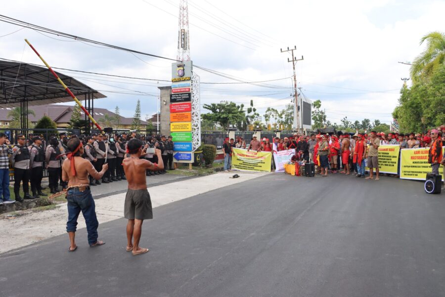 KAPUAS, CYRUSTIMES.com – Suasana di depan Markas Kepolisian Resor (Polres) Kapuas pada Rabu siang, 5 November 2025, tampak ramai namun tertib. Sekitar 125 orang dari Aliansi Masyarakat Adat berkumpul sejak pukul 12.00 WIB untuk menggelar aksi damai.