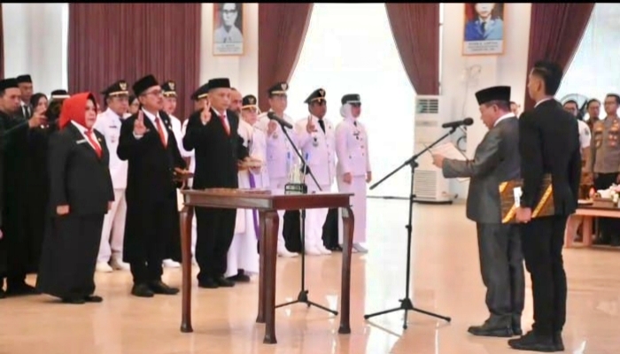 Adapun 71 pejabat yang dilantik terdiri atas delapan Pejabat Pimpinan Tinggi Pratama promosi; Pejabat Administrator promosi 19 orang dan rotasi 22 orang; Pejabat Pengawas promosi 14 orang dan rotasi lima orang; serta pengukuhan tiga orang.