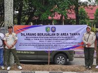 Satpol PP Palangka Raya Pasang Spanduk, Larangan Berjualan di Area Taman Yos Sudarso