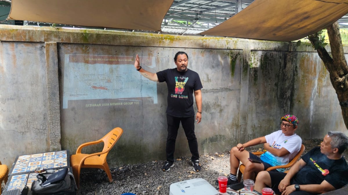 CYRUSTIMES, PALANGKA RAYA – Satuan Tugas Wilayah (Satgaswil) Kalimantan Tengah (Kalteng) Densus 88 Anti Teror (AT) Polri menggandeng komunitas Sepeda HASI Palangka Raya dalam sosialisasi pencegahan paham kekerasan dan sadistis, Sabtu (24/1/2026). Kegiatan berlangsung di Kedai Kopi A’long Space, Janah Jari, Kota Palangka Raya.