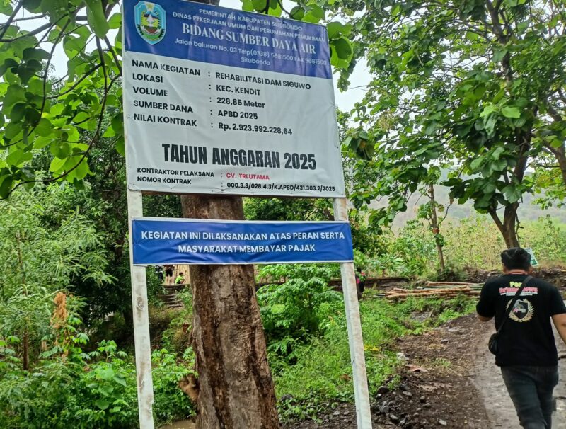 SITUBONDO – Pekerjaan rehabilitasi Dam Siguwo menuai sorotan publik. Proyek yang bersumber dari anggaran pemerintah daerah tersebut sejak awal sudah disebut-sebut sebagai “proyek titipan” dalam proses lelang tender.