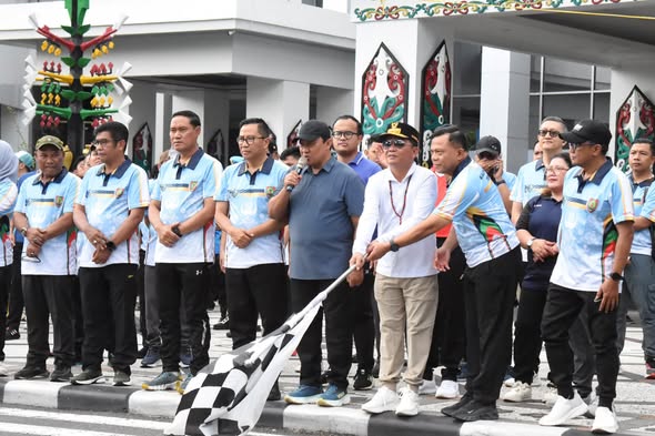 PALANGKA RAYA-Gubernur Agustiar Sabran bersama Wakil Gubernur Edy Pratowo dan Plt. Sekretaris Daerah Leonard S. Ampung jalan sehat dan senam bersama ASN lingkup Pemprov Kalteng, di halaman Kantor Gubernur, Jumat (28/11/2025).