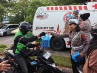 Ditlantas Polda Kalteng Bagikan Takjil Kepada Pengendara