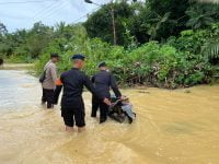 Brimob Kalteng Beri Pertolongan Warga Terdampak Banjir