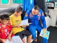 Suasana Baru Belajar Diatas Kapal Polisi, Anak – Anak Antusias Rutin Datang untuk Membaca Buku