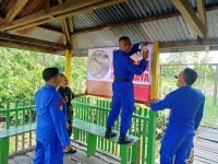 Personil KP XVIII-2006 Ditpolairud Pasang Peringatan Waspada Buaya