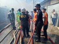 Brimob Polda Kalteng Bantu Padamkan Kebakaran Rumah dan Kios Di Kapuas