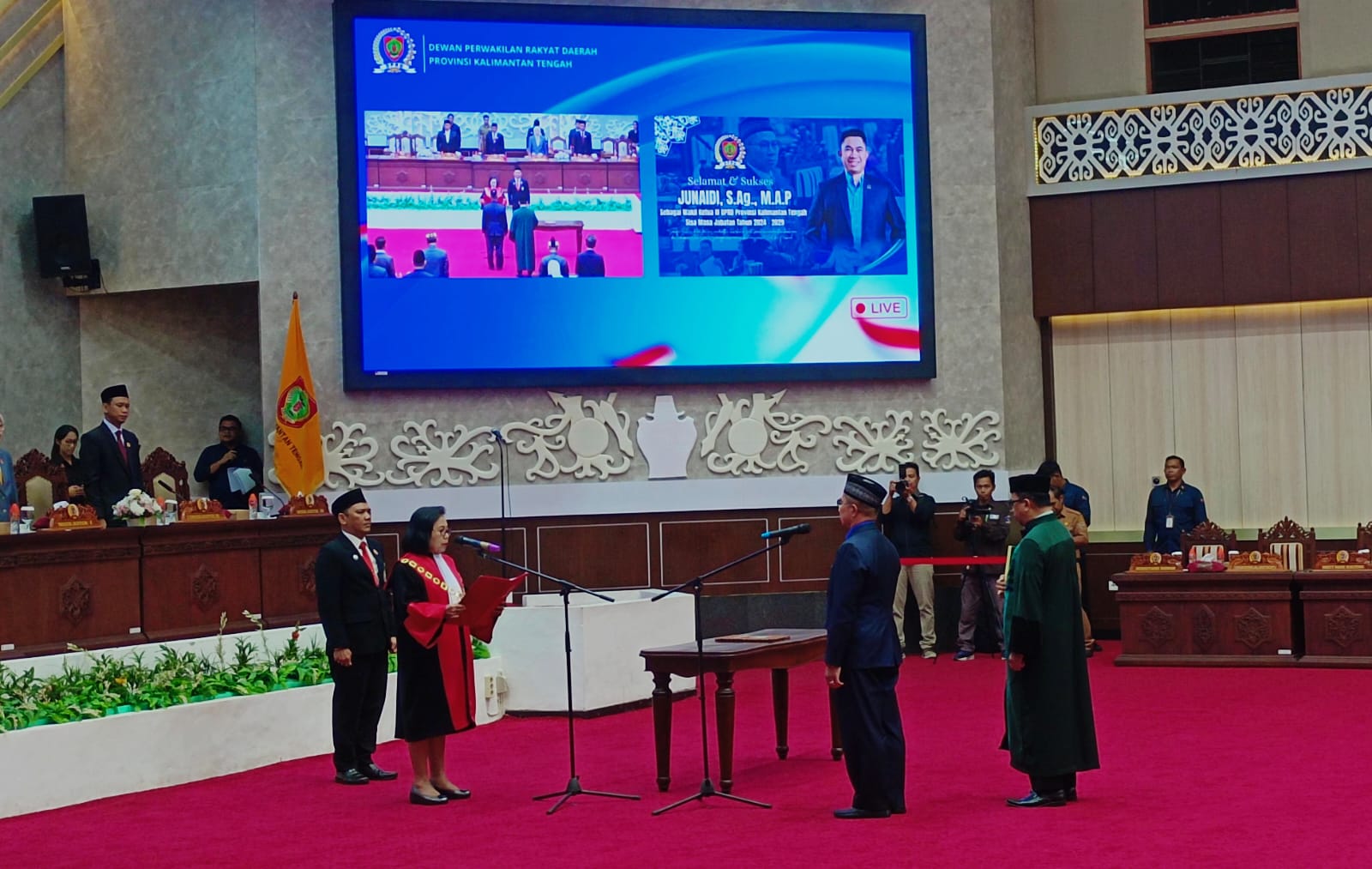 Pelantikan digelar dalam Rapat Paripurna ke-22 Masa Sidang III Tahun 2025, Selasa (2/9/2025). Prosesi pengucapan sumpah jabatan dipimpin Ketua DPRD Kalteng Arton S. Dohong dan disaksikan Ketua Pengadilan Tinggi Palangka Raya, Pudjiastuti Handayani.