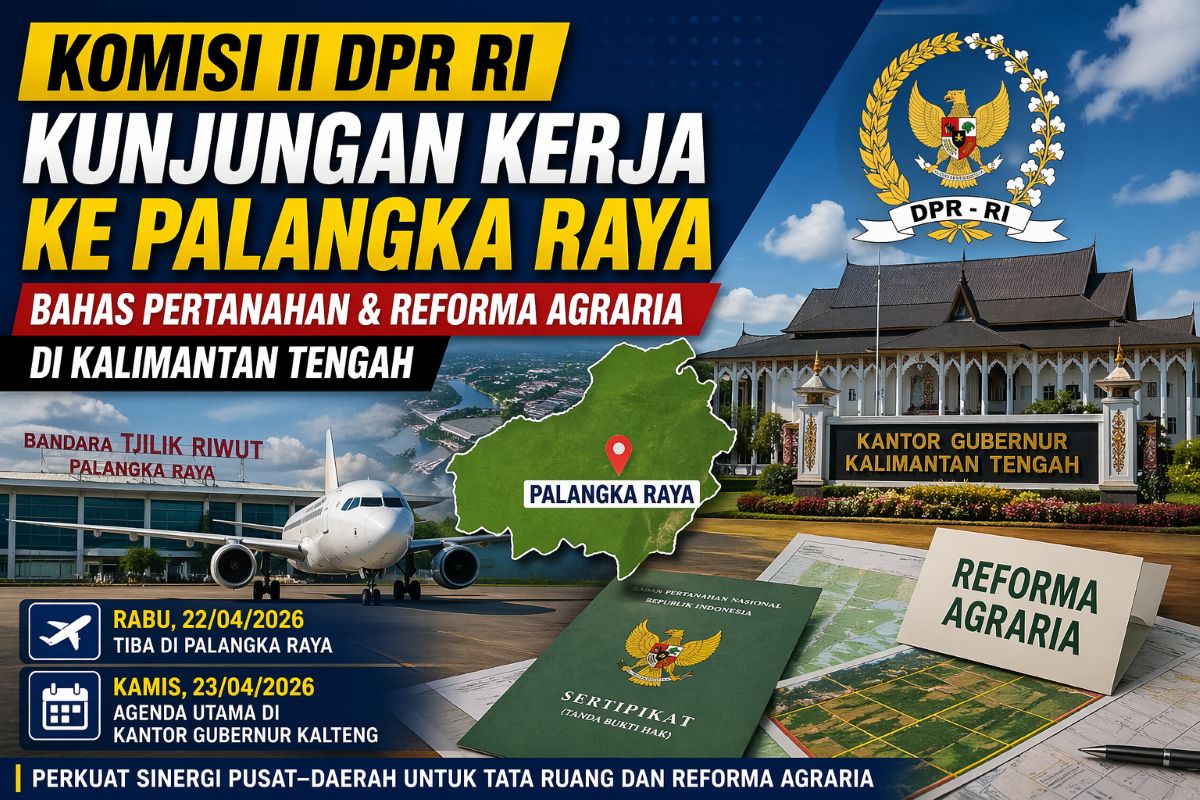 Kunjungan ini menjadi bagian dari fungsi pengawasan DPR RI terhadap pelaksanaan kebijakan pertanahan di daerah. Agenda utama akan berlangsung pada Kamis (23/04/2026) di Kantor Gubernur Kalimantan Tengah.