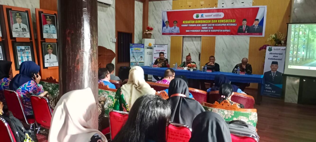 KAPUAS, CYRUSTIMES.com – Dinas Kearsipan dan Perpustakaan (Disarpustaka) Kabupaten Kapuas mengumpulkan seluruh perangkat daerah untuk mengikuti Bimbingan dan Konsultasi Format Terbaru Audit Sistem Kearsipan Internal (ASKI) Tahun 2026.