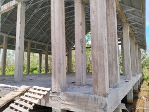 Pantauan wartawan Cyrustimes.com di lokasi Selasa 11 April 2023, bahwa kondisi terkini bangunan itu baru rampung dalam tahap pengerjaan lantai dan atap saja.