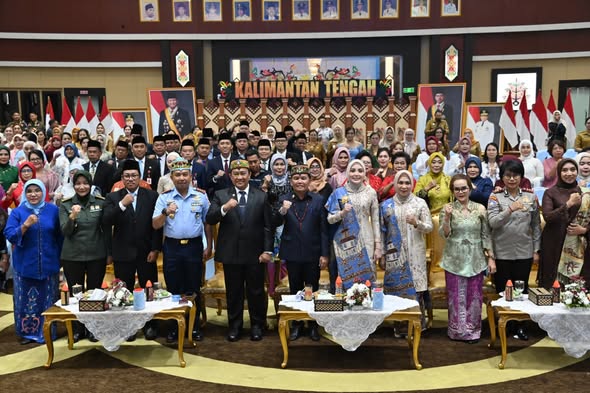 Gubernur Agustiar Sabran bersama Ketua TP PKK Provinsi Kalimantan Tengah (Kalteng) Aisyah Thisia Agustiar Sabran hadir secara langsung dalam Peringatan Hari Ibu Ke-97 Tingkat Provinsi Kalteng Tahun 2025 di Aula Jayang Tingang, Lantai II Kantor Gubernur, Selasa (2/12/2025).