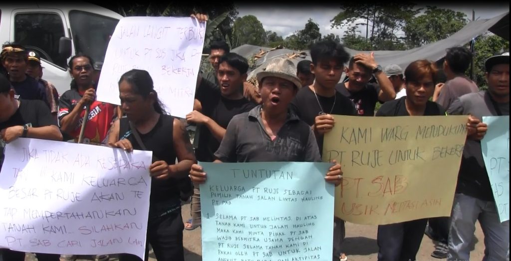 Terkait blokade akses jalan houlling sepanjang 300 meter hanya berlaku kepada PT SAB yang berkaitan dengan produksi dan untuk logistik PT SAB. Sementara bagi perusahan lain dipersilahkan untuk melintas melakukan aktivitas seperti biasa di tanah milik keluarga PT RUJE.