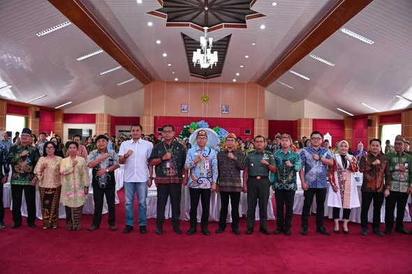 PALANGKA RAYA- Puncak Dies Natalis ke-62 Universitas Palangka Raya (UPR) berlangsung di Aula Rahan UPR, Kamis (27/11/2025). Hadir mewakili Gubernur Kalimantan Tengah Agustiar Sabran, Plt. Sekretaris Daerah Leonard S. Ampung turut memberikan dukungan penuh pemerintah terhadap keberlanjutan peran UPR sebagai pusat pendidikan dan inovasi daerah. Tahun ini, Dies Natalis mengusung tema “62 Tahun Universitas Palangka Raya, Unggul dalam Inovasi, Berkarakter dalam Aksi, Berdampak untuk Negeri.”