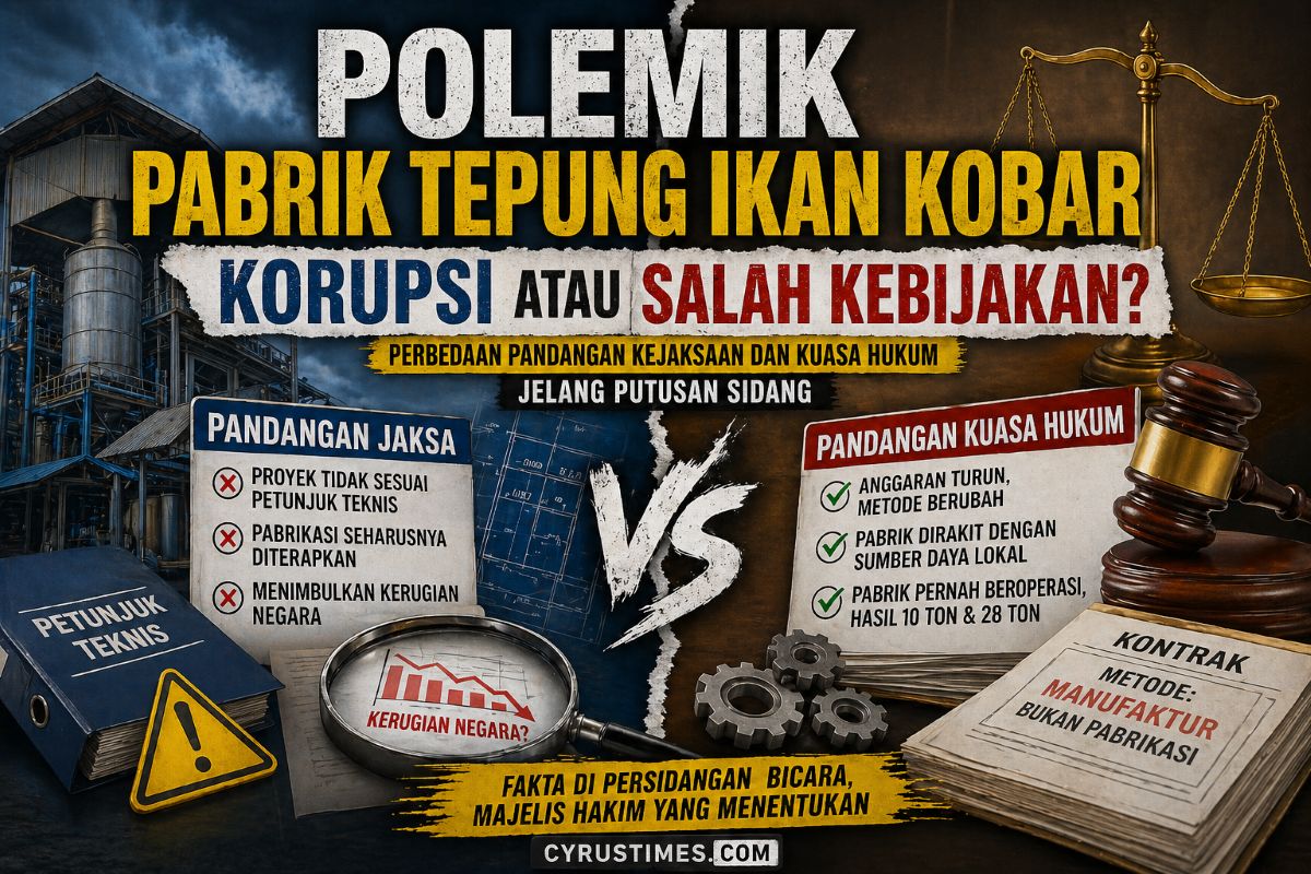 CYRUSTIMES, PALANGKA RAYA – Kasus dugaan korupsi pembangunan pabrik tepung ikan di Desa Sungai Kapitan, Kabupaten Kotawaringin Barat (Kobar), Kalimantan Tengah, kembali menjadi sorotan publik menjelang putusan sidang, menyusul perbedaan pandangan antara kejaksaan dan kuasa hukum terdakwa terkait konstruksi proyek.