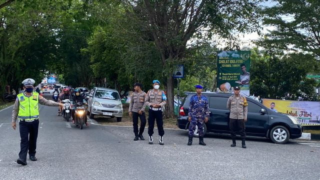Hadir di Tengah Masyarakat Personil Polres Bangka Barat Lakukan Pengamanan Sholat Idul Fitri