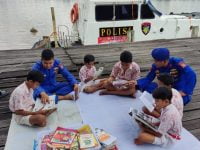 Kapal Melek Huruf Ditpolairud Polda Kalteng Ramai Dikunjungi Pelajar