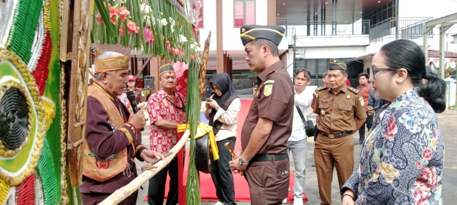 KAPUAS, CYRUSTIMES.com – Upacara Adat Dayak Potong Pantan digelar secara khidmat untuk menyambut kedatangan Kepala Kejaksaan Negeri Kapuas yang baru, Rade Satya Parsaoran, SH., MH., bersama istri, di Kantor Kejaksaan Negeri Kapuas, Rabu pagi, 29 Oktober 2025.